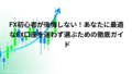 - スプレッド、スワップポイント、約定力、安全性、サポート体制、そして少額で始められるかどうかの6つのポイントをしっかり比較しましょう。