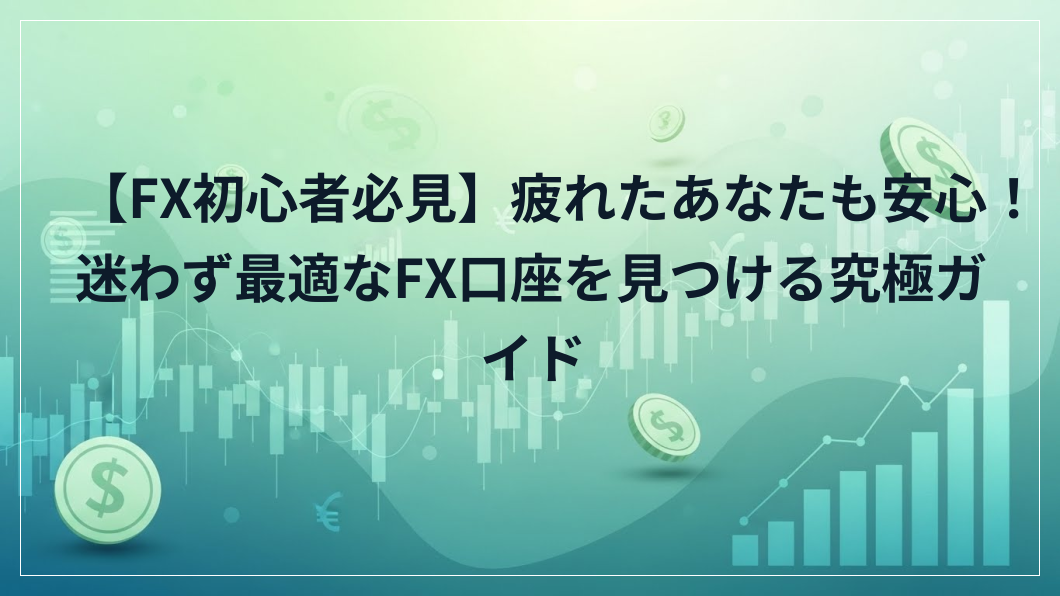 FXを始めたいけれど、どのFX口座を選べばいいのか迷って、ちょっとお疲れ気味ではありませんか?「口座選びで失敗したらどうしよう…」そんな不安を抱えるFX初心者の皆さんの気持ち、痛いほどよくわかります。私も昔はそうでしたから。でも大丈夫です。この記事を読めば、専門用語に惑わされることなく、FX口座ごとの特徴がスッキリ理解できて、あなたにピッタリの口座がきっと見つかります。さあ、一緒に安心してトレードを始められる最適な一歩を踏み出しましょう!